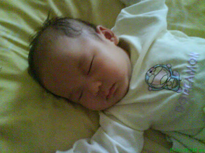 After first experience with Lynn on the jaundice, I give extra care to Zhe Hao to make sure same mistaken would not repeat twice (Lynn had to go through the photo-theraphy during first week of life is due to underfeeding. She just refused to wake up for milk.) Zhe Hao on the other hand eat mor than his sister. In fact, towards the end of the confinement month, he had increased his milk intake tremendously - almost every hour he will demand for milk until I become so tired and so scare of nursing him. However Hao still cannot run away from not having jaundice.